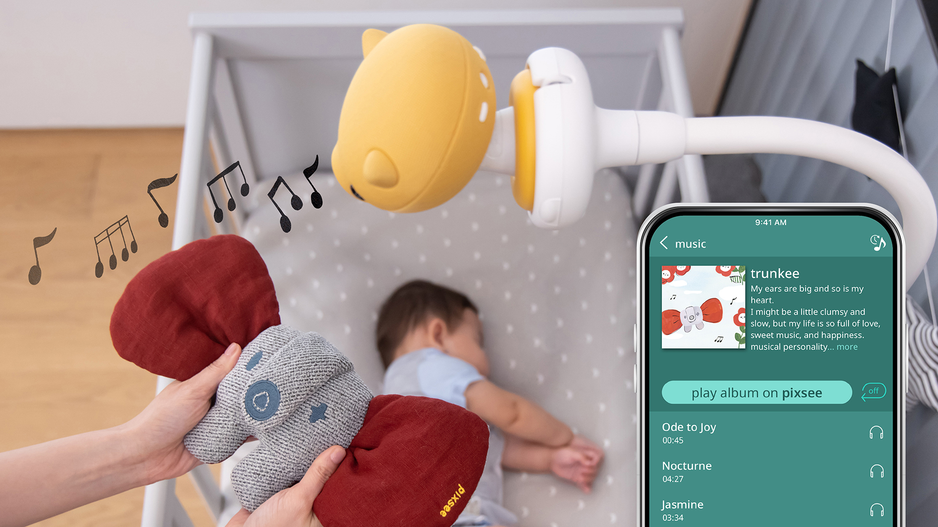 音樂對孩子的成長、認知與感官發展扮演重要的角色。而產品透過三款不同的Pixsee Friend動物布偶,結合Pixsee PlayAI智慧寶寶攝影機的「智慧物件辨識」,當寶寶或是家人拿起Pixsee Friend布偶對著鏡頭揮一揮,就能啟動各個布偶所代表的特色音樂,家長也可以透過Pixsee APP錄製自己的聲音,當Pixsee Play攝影機偵測到布偶,就能讓寶寶聽到爸爸、媽媽說故事或唱搖籃曲,成長過程更有安全感。透過這樣的方式,讓孩子探索自己的感受,學習獨立、自信、處理情緒、發揮想像力,有助人格養成。而Pixsee Friend動物布偶的專屬音樂,則是由留美音樂教育博士陳曉嫻教授與ChiaBow’s Music創辦人沈嘉寶老師等音樂教育專家,所精心挑選的樂曲,促進孩子的認知、感官發展、智力發育和提高創造力。