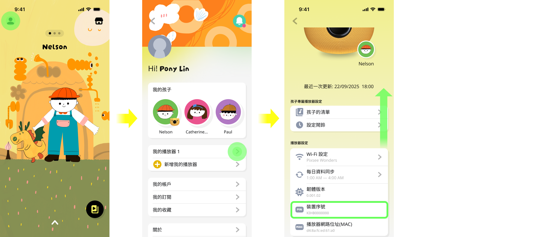 2.如已完成安裝綁定,可以在Pixsee Wonders App 首頁選單 >「我的播放器」>「播放器設定」確認。