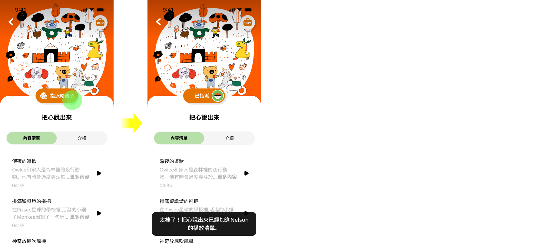 1.在 Pixsee Wonders App 建立孩子資料,並指定播放器給該孩子。