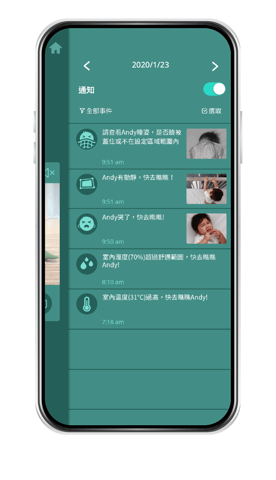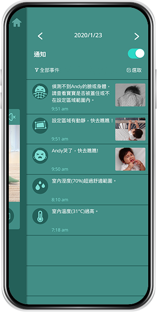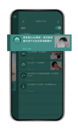 當識別到寶寶的臉部被遮蔽時,Pixsee將立即透過Pixsee App通知您,減少您的擔心。TIPS: 臉部覆蓋功能建議適用於0~6個月的寶寶。