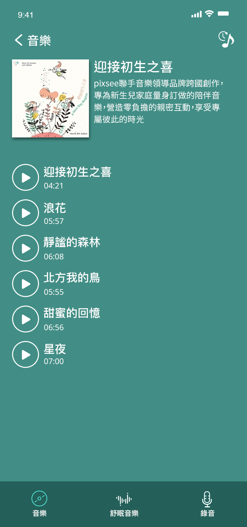 與「風潮音樂Wind Music」聯手合作,精選由丹麥製作人Henrik Birk Aaboe ,專為新生兒家庭量身訂做的音樂放鬆神器。