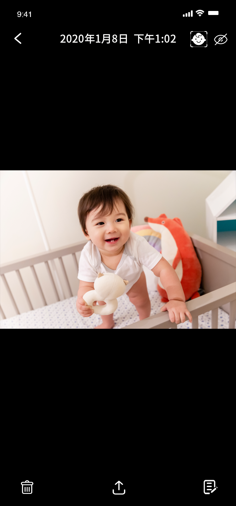 Pixsee的智慧偵測技術和先進的演算法,能即時捕捉寶寶的臉部表情和家人的甜蜜互動。