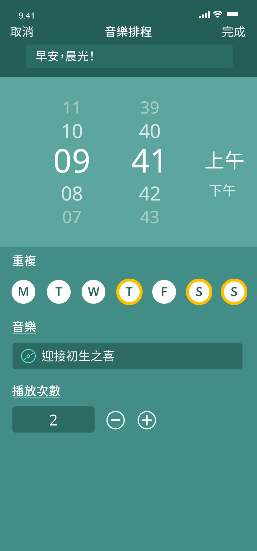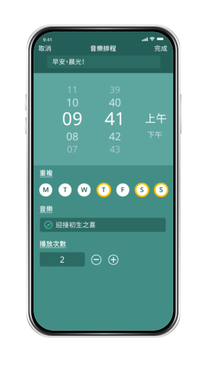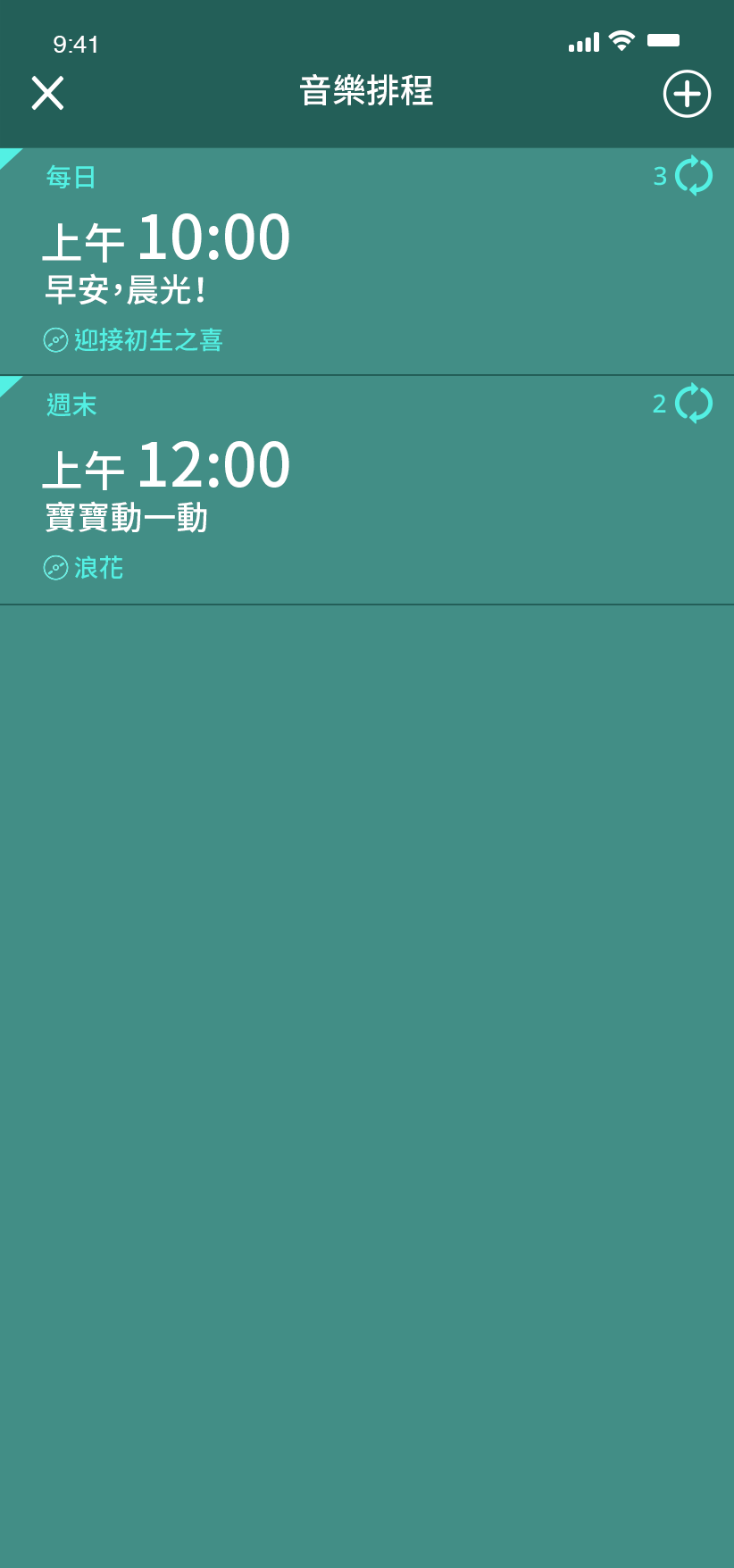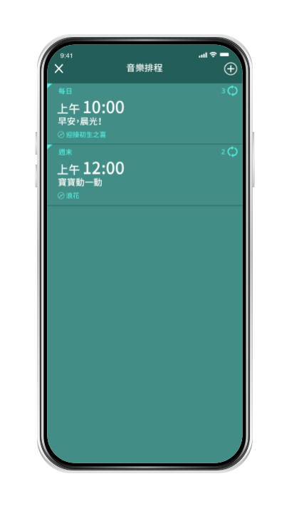 依照作息自訂音樂及播放時程,為寶寶建立日常習慣。