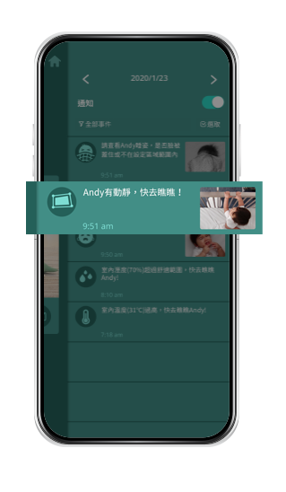 預先標記安全區域範圍,當您的寶寶即將越線時,您即可收到警示通知。