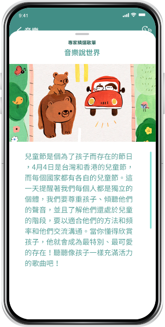 獨樂樂不如眾樂樂 ! Pixsee的音樂教育專家強調共聽互動的重要性,為每一份歌單撰寫「導聆短文」,幫助父母聽懂樂符間的訊息。