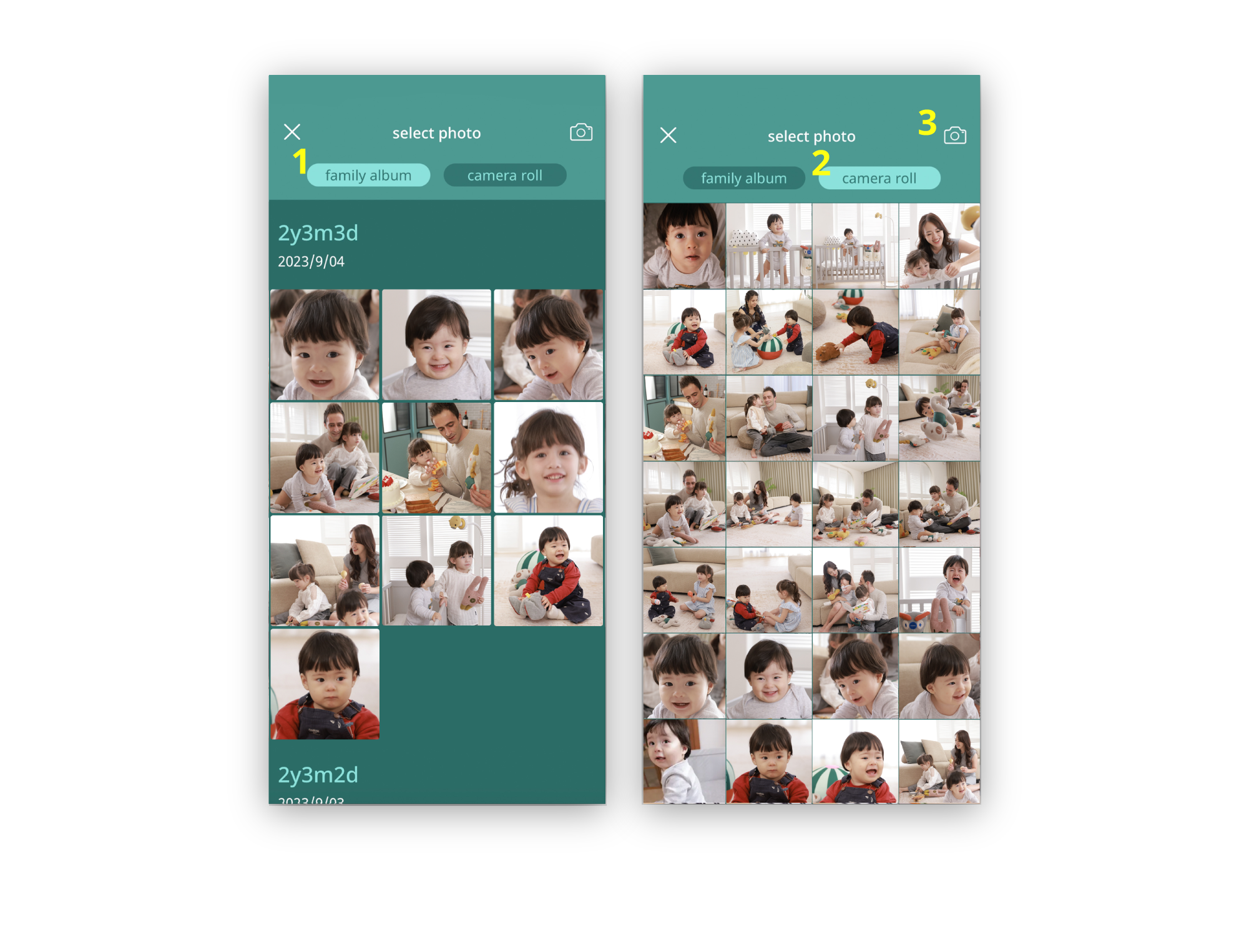 1. 進入App選單>點選family faces>設定希望被辨識的人臉,每位成員需提供 3 張照片