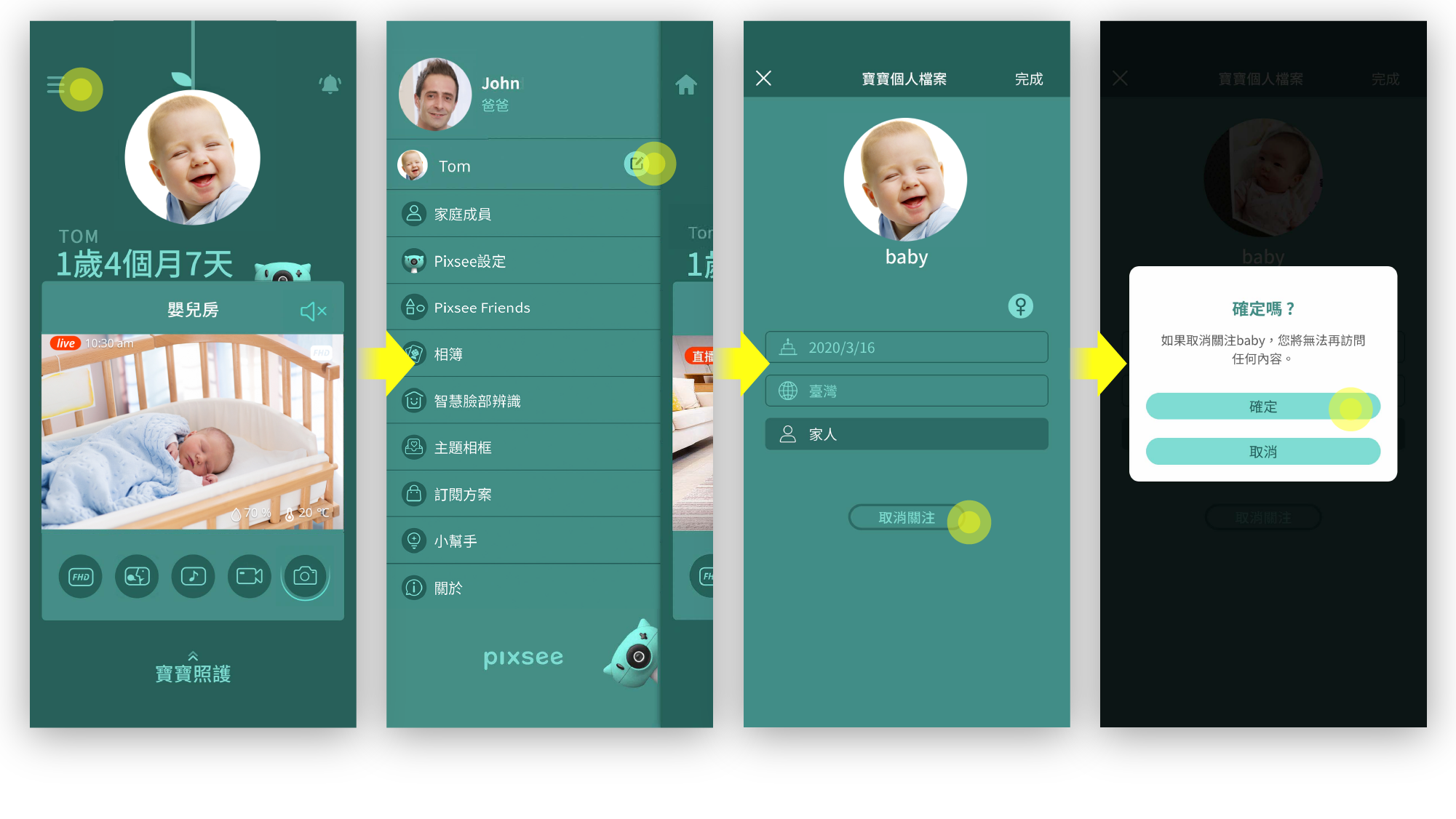 取消關注後,該親友即無法再觀看Pixsee裝置。