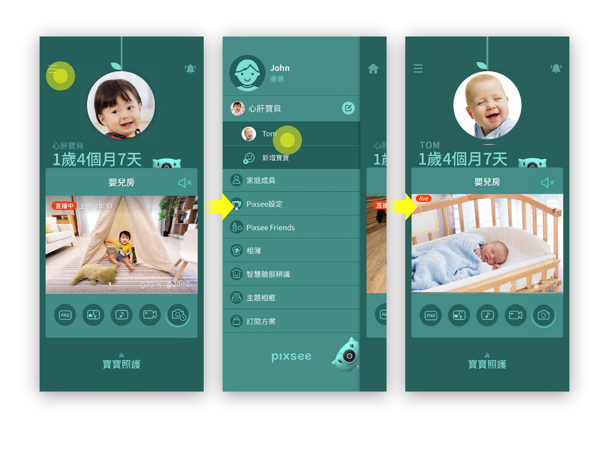 如您同時受邀關注多個寶寶,可利用選單切換觀看不同寶寶
