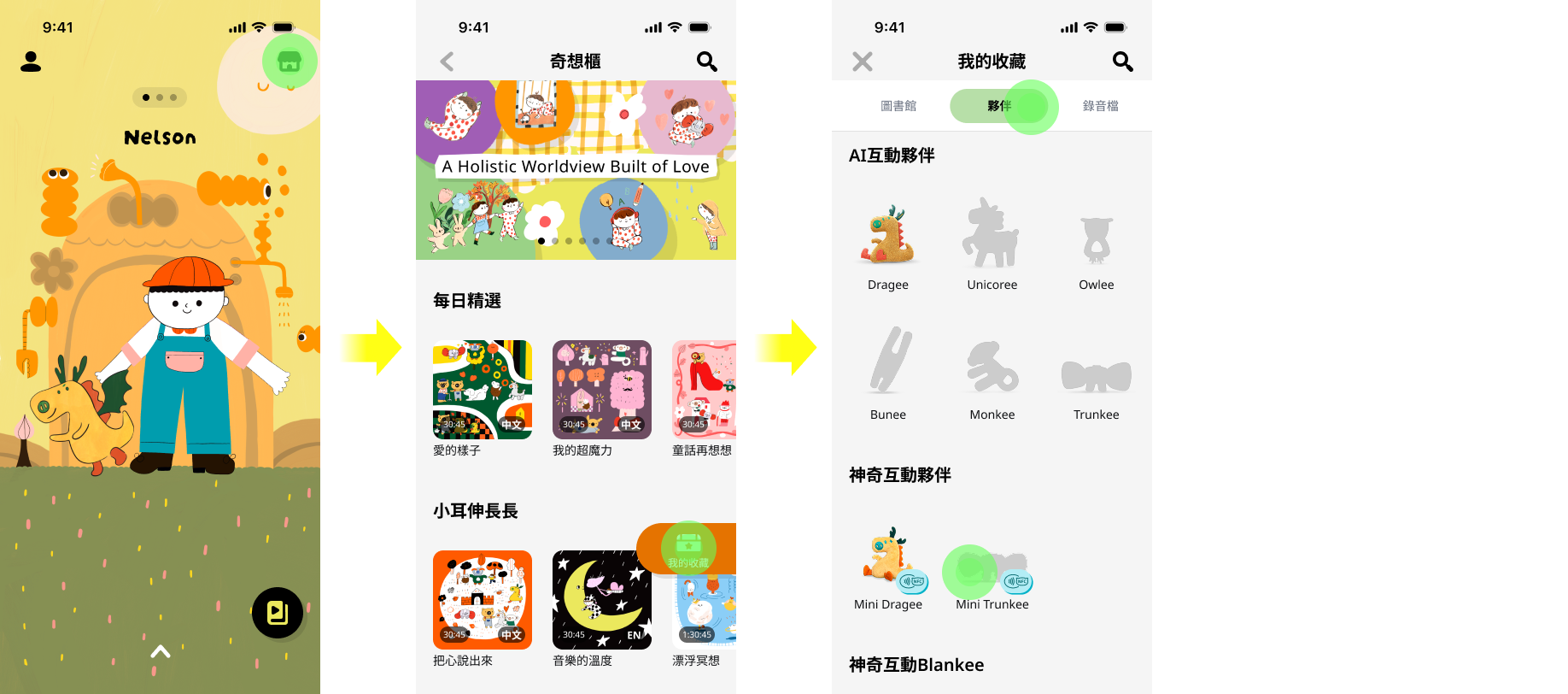 1.開啟 Pixsee Wonders App,點「奇想櫃」>「我的收藏」>「夥伴」。