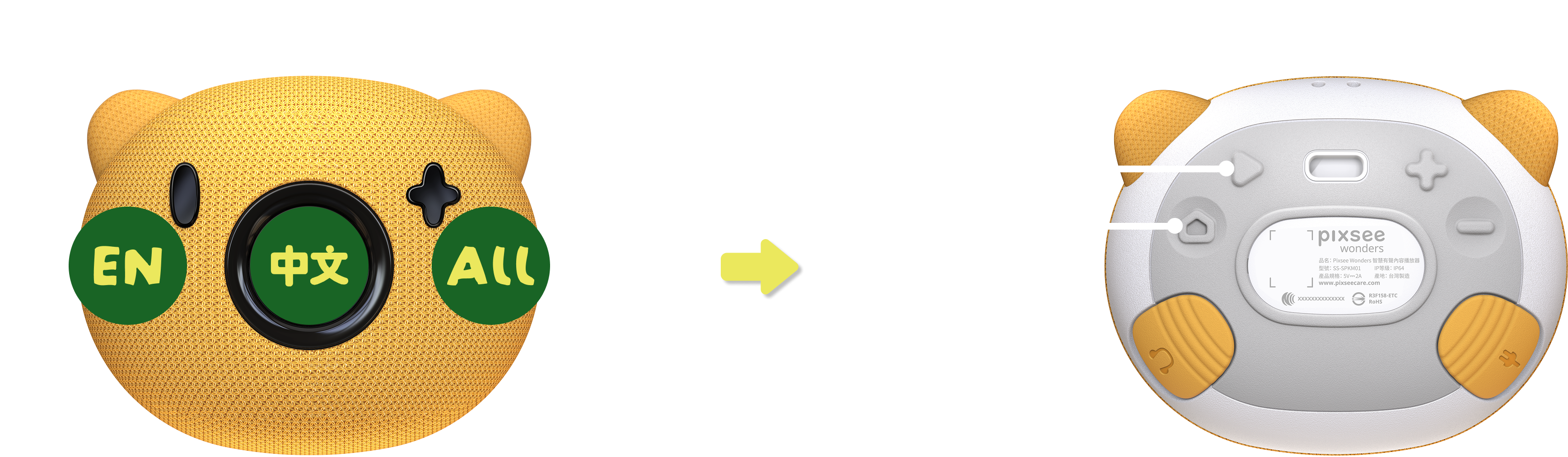 短按「+ / - 」鍵切換至「故事語言設定」,即可在支援語言中切換。