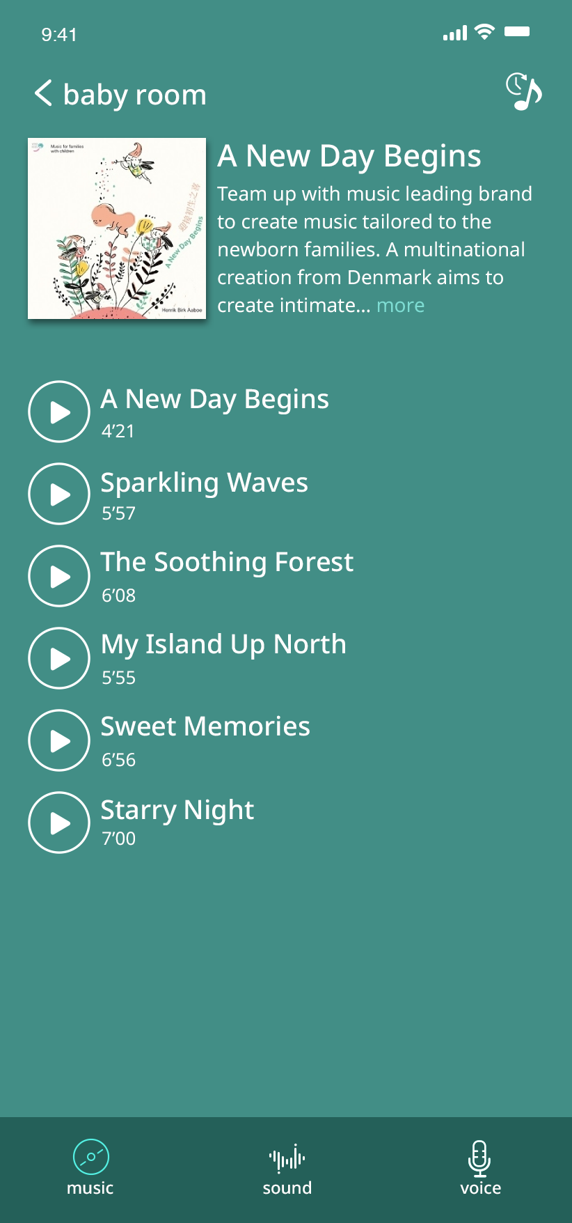 Determine what music or sound to play, when it plays, and create a musical routine for your baby.