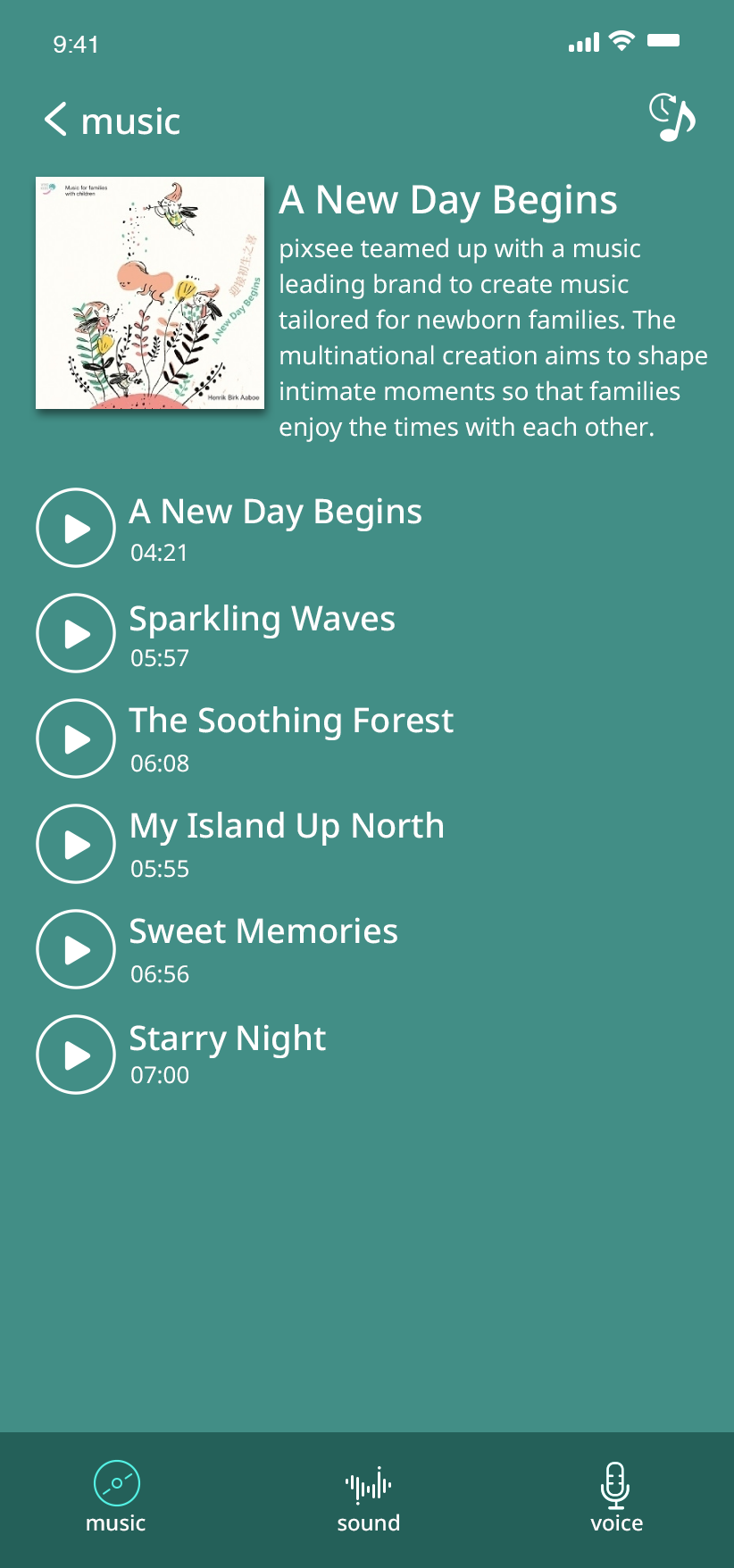 Enjoy specially curated music and lullabies