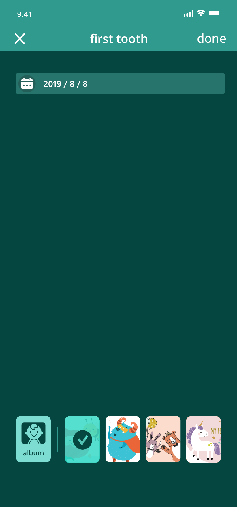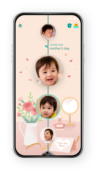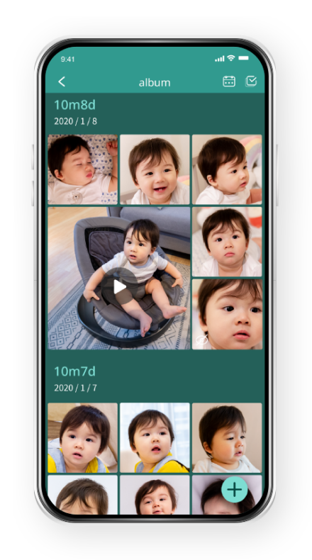 Keep track of your baby’s growth through a timeline view of daily pictures.