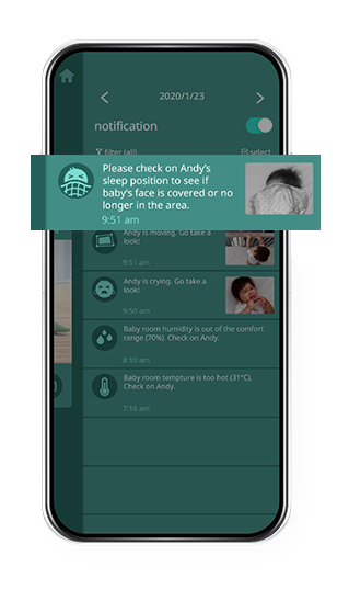 Pixsee alerts you if it recognizes your baby’s face is covered, so you can reduce your what-ifs.