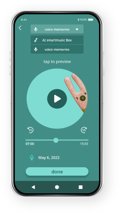 Pixsee Friends each come with a default playlist, but you can create your very own special playlist for your baby and their Pixsee Friends. Record customized sounds and voices (or “parentese,” an exaggerating speaking style that conveys total engagement with a child) and assign them, via the app, to a Pixsee Friend. Through Trunkee, Bunee, or Monkee, Pixsee Play might sing lullabies in mommy’s voice or tell stories in daddy’s. A wonderful way to reassure your baby and familiarize them with your voice.