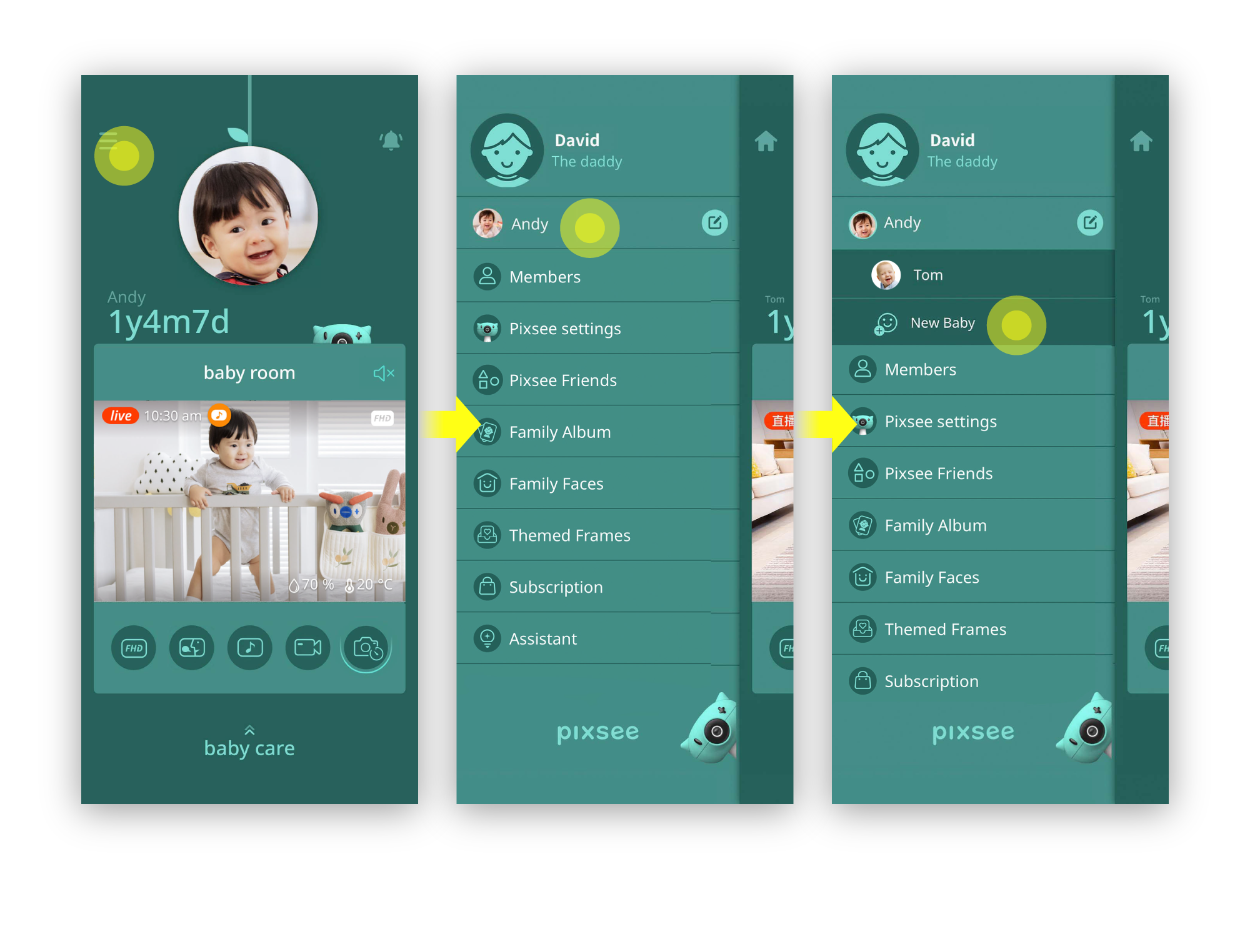 2. When setting up "baby name" under "baby profile" for each Pixsee, please provide different names or tag on location details to help you quickly differentiate the different devices.